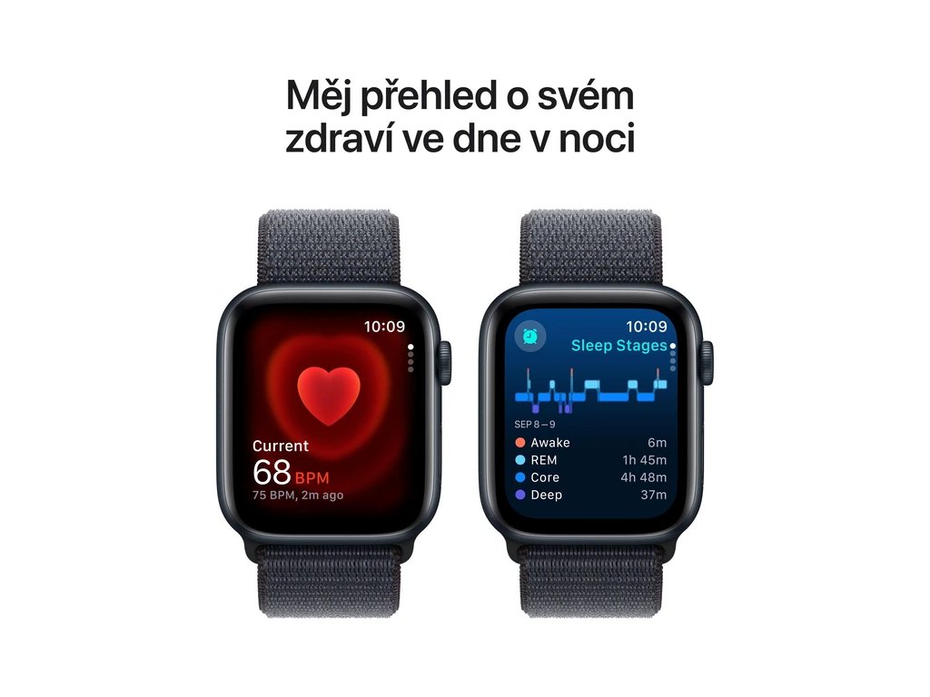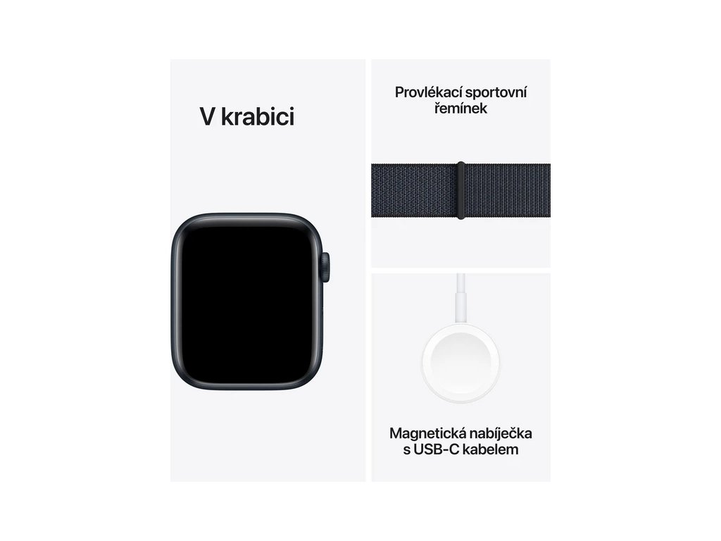 Apple Watch SE (2024) 44mm Temne atramentový hliník s atramentovo fialovým prevliekacím remienkom