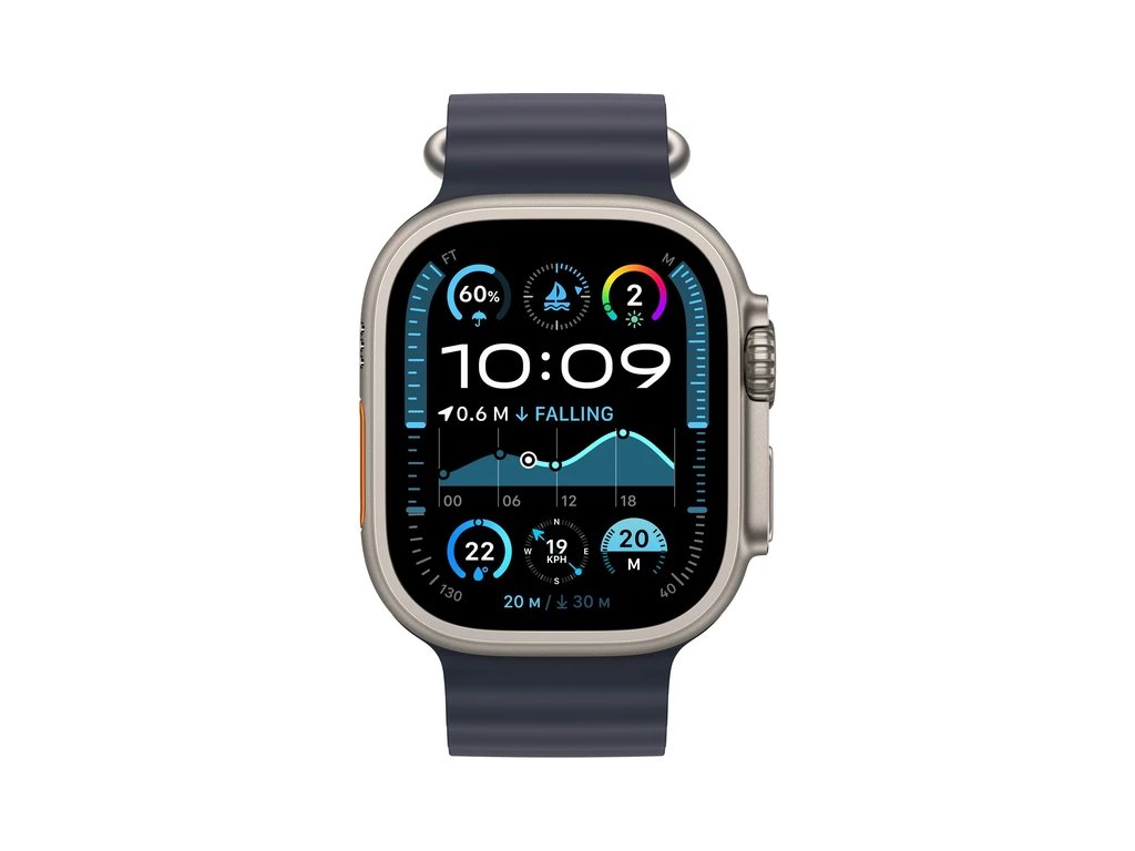 Apple Watch Ultra 2 49mm Prírodný titán s námornícky modrým oceánskym remienkom